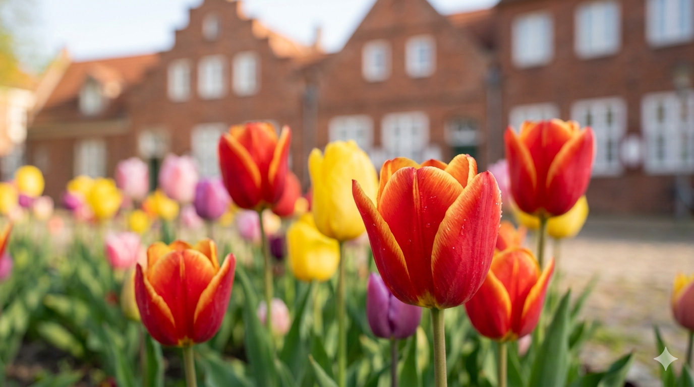 • Blütenpracht: Tausende Tulpen verwandeln das Viertel in ein lebendiges Gemälde und feiern den Höhepunkt der Tulpensaison.