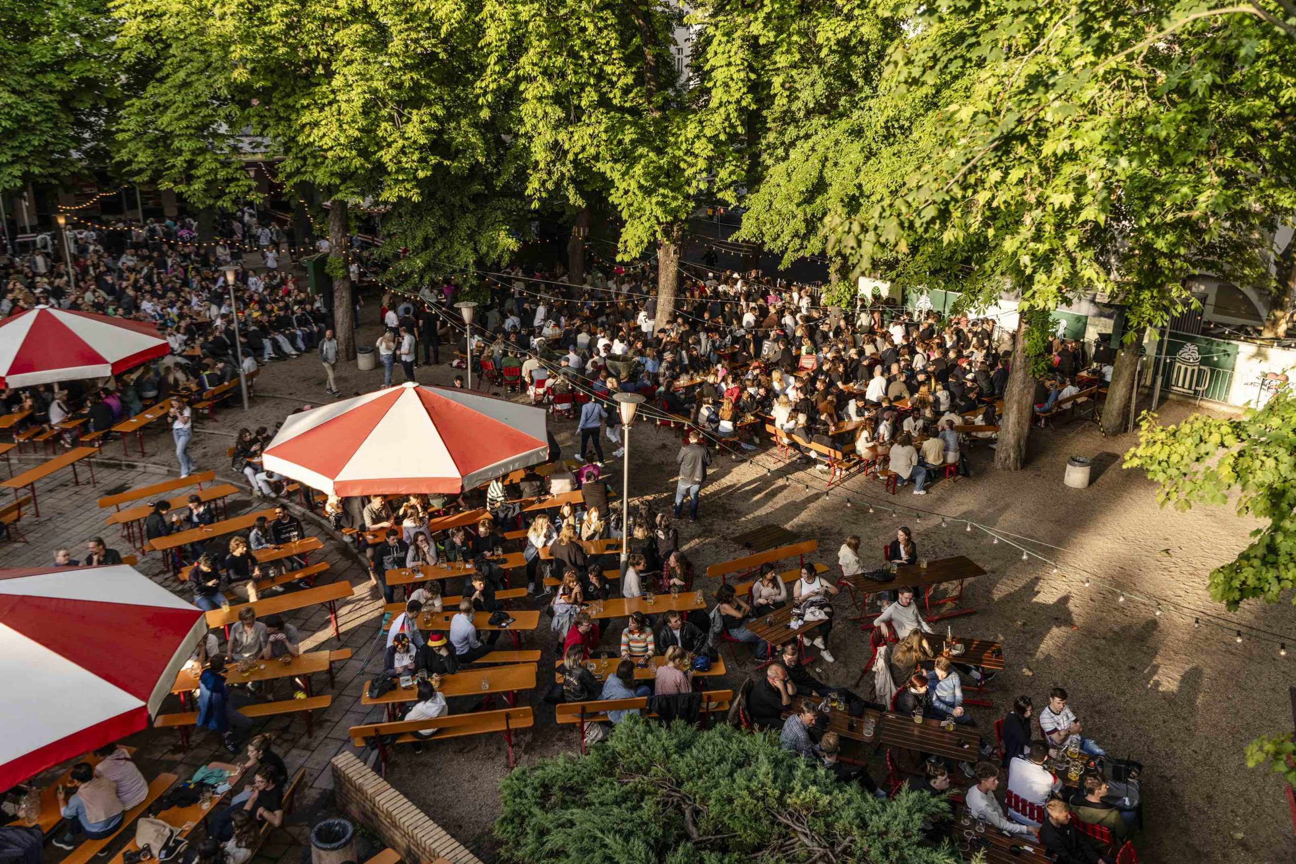Ab Ende März lädt der weitläufige Innenhof wieder zum Verweilen ein. Während die Kinder zwischen den Bäumen toben (und vielleicht schon nach ersten Ostereiern suchen), genießen die Großen die entspannte Atmosphäre.